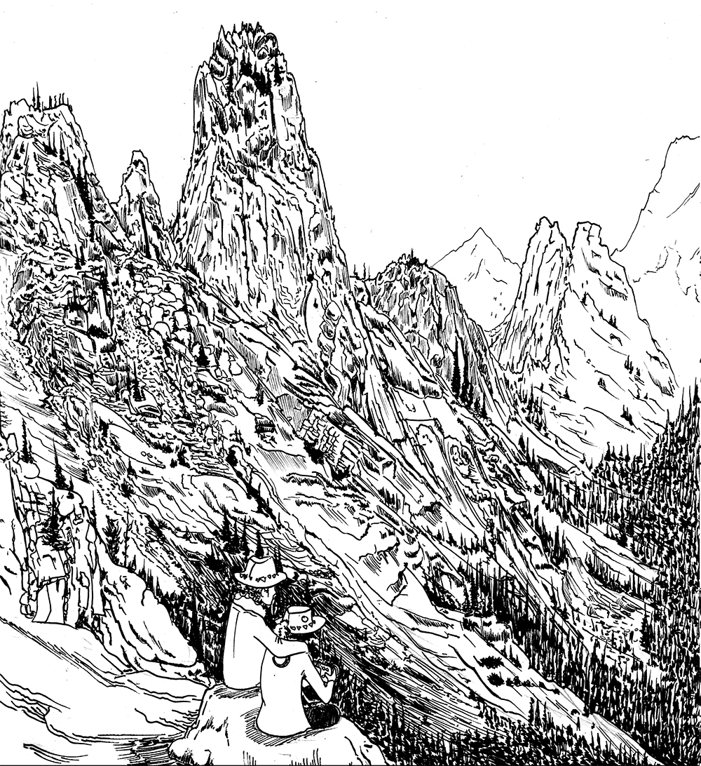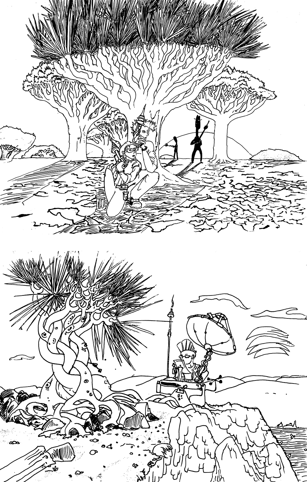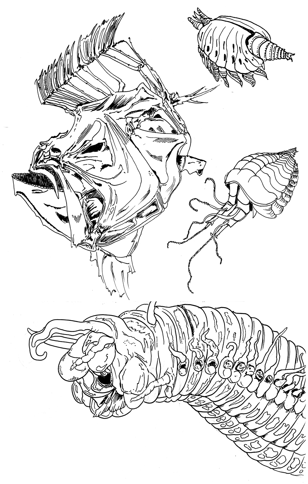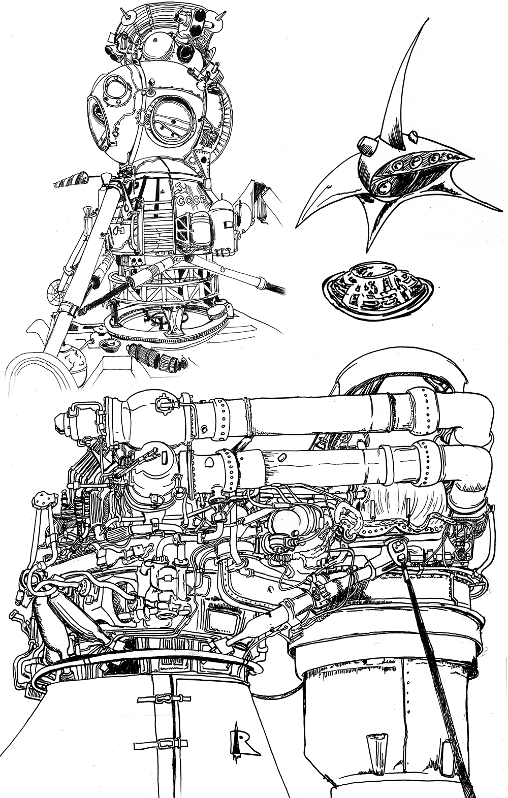 These are various ink drawings I’ve done over time, from travels real and fantastical. Sketches of artifacts in museums I’ve visited, imaginary objects, whimsical doodles…they’re all candidates for a weird codex I’m assembling. There’s two secret alphabets that are part of it, and a cipher will be included!